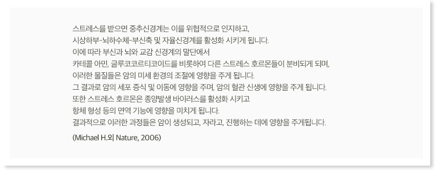 암을 진행시키고 악화시키는 요소가 될 수 있다는 증거들이 밝혀지고 있습니다.